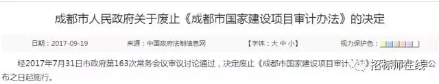 经2017年7月31日市政府第163次常务会议审议讨论通过,决定废止《成都市国家建设项目审计办法》,现予公布,自公布之日起施行。