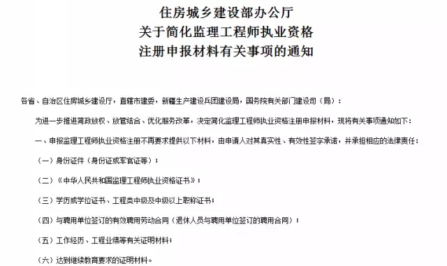 四、住建部简化注册监理工程师申报材料,身份证、学位证、职称证书等统统不用提供了