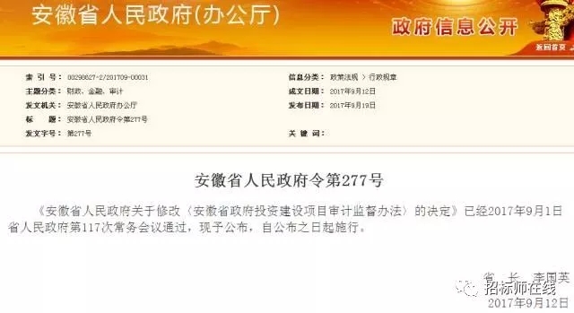 对《安徽省政府投资建设项目审计监督办法》作如下修改:
